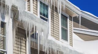 Indicate ice dams Ice dams form when snow piles high on the roof and the weather stays cold Snow touching the roof melts runs down the roof under the snow to the eaves and refreezes Water may back up behind the dam and leak into the attic or sidewalls of the home causing damage (see “First aid for ice dams”) As figure shows icicles on the ... Read Content